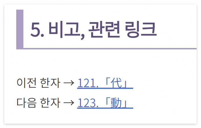 각 한자의 공부가 끝나고 나면, 글 말미의 링크를 통해 바로 다음 번호의 한자로 넘어가시면 됩니다.