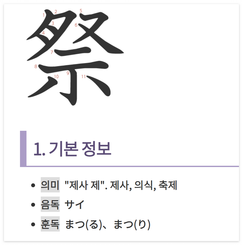 각 한자의 포스트는 다음과 같이 구성되어 있습니다.