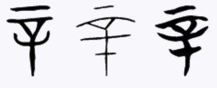 - 의미 "매울 신". 맵다, 가혹하다, 괴롭다