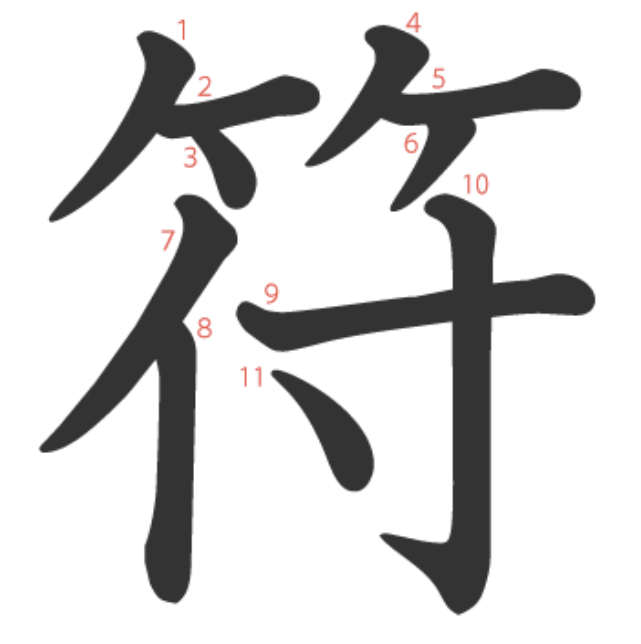 符는 "대나무 조각(𥫗)을 붙여서(付) 진위를 확인하는 증표" -> "부호, 기호"라는 뜻의 글자입니다.