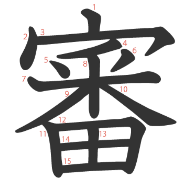 - 의미 "살필 심". 심사하다, 자세히 조사하다