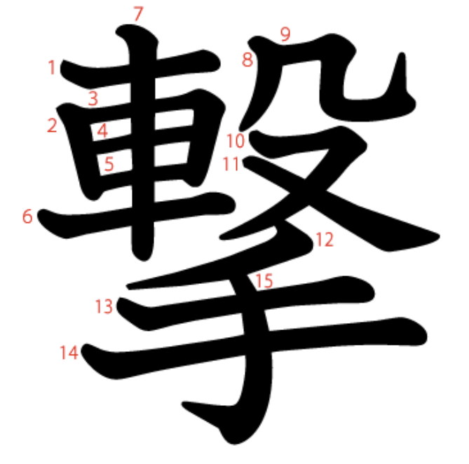 - 의미 "칠 격". 때리다, 공격하다, 무력을 가하다