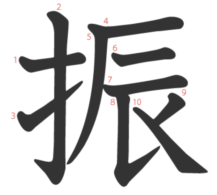 振 = 扌 + 辰。