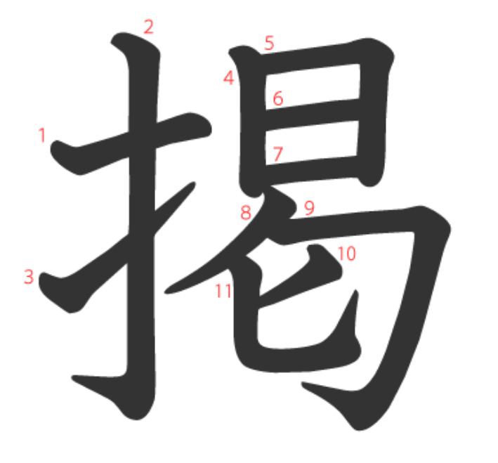 掲는 "허리를 굽신거리며(曷) 손을 위로 들어(扌) 돈을 구걸하다" -> "높이 들다, 걸다"라는 뜻의 글자입니다.