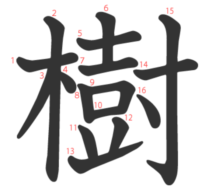 樹는 "나무(木)를 심어(寸) 과수원을 세우고 북(壴)을 치며 축하하다" -> "나무, 세우다"라는 뜻의 글자입니다.
