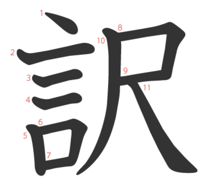 - "말을 타고(尺) 온 외국 사신의 말(言)을 통역하다" -> "번역하다, 내용"