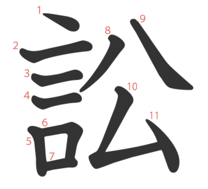 訟는 "억울함을 공공기관(公)에 호소하다(言)" -> "소송하다"라는 뜻의 글자입니다.