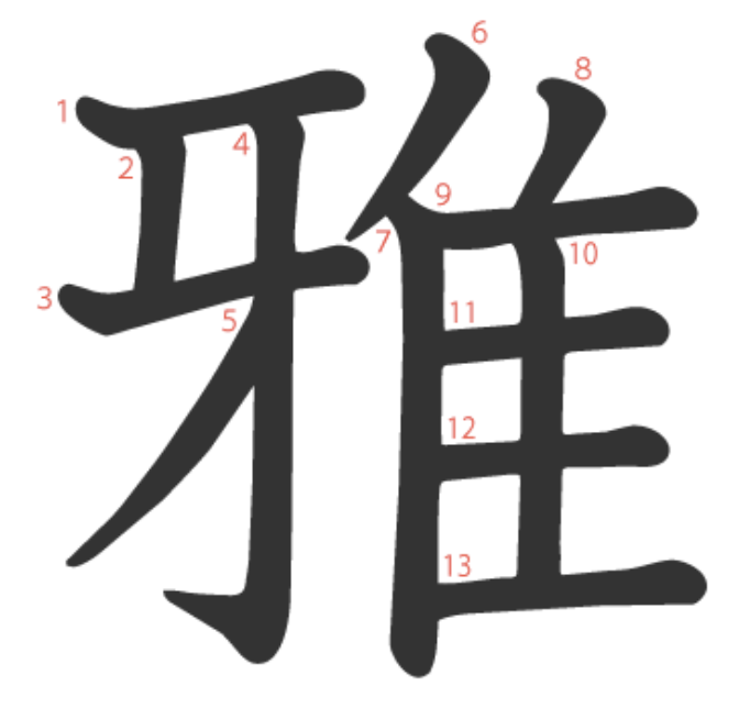 雅 = 牙 + 隹。