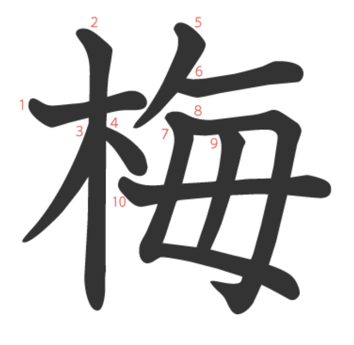 梅는 "나무(木)" -> "매화나무"라는 뜻의 글자입니다(毎는 소리부).