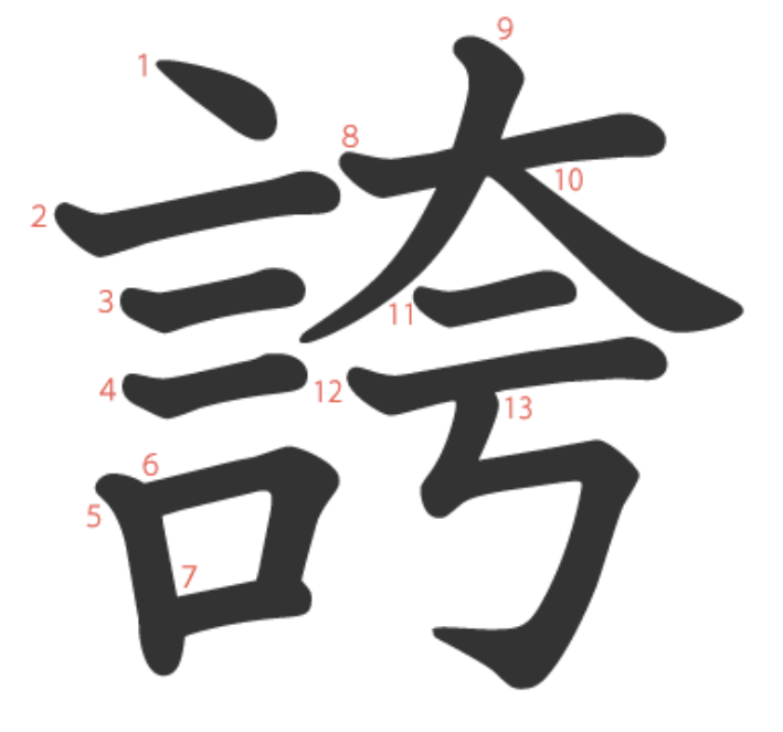 誇는 "양 팔을 벌리고 뽐내며(夸) 자기 자랑을 떠벌리다(言)" -> "자랑하다, 과시하다"라는 뜻의 글자입니다.