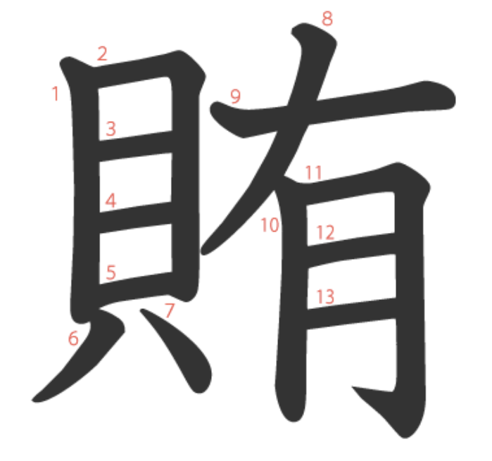 - 의미 "재물/뇌물 회". 뇌물, 재물
