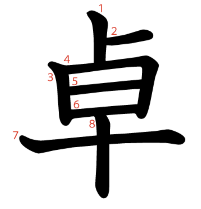 卓는 "아침 일찍 일어나(早) 하늘 높이 날아가는 새(⺊)" -> "높다, 뛰어나다"라는 뜻의 글자입니다.
