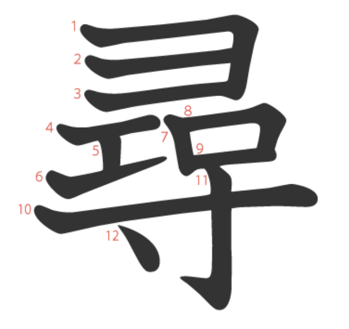 尋 = ⺕ + 工 + 口 + 寸。