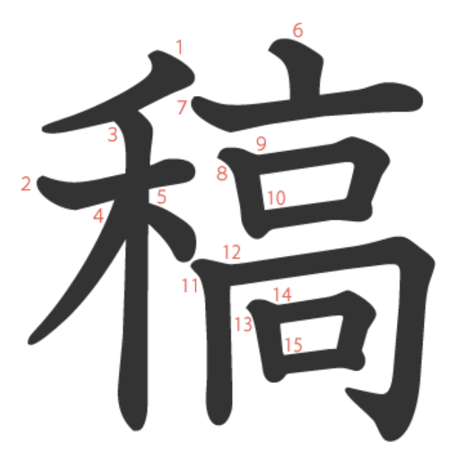 稿는 "원고 뭉치가 쌓인 모습이 마치 볏짚(禾)이 높이 쌓인(高) 모습과 같다" -> "원고"라는 뜻의 글자입니다.