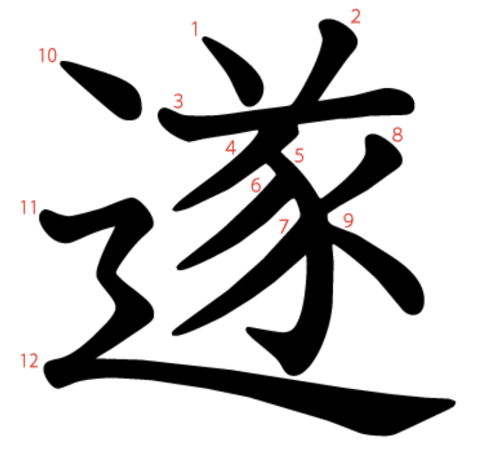 遂는 "멧돼지(豕)가 풀숲(丷)을 헤치고 달아나(⻌) 사냥꾼에게서 도망치는 데 성공하다" -> "이루다, 성취하다"라는 뜻의 글자입니다.