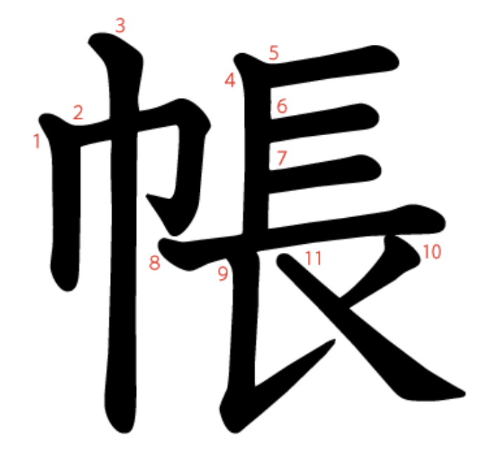 帳는 "길다란(長) 천(巾)" -> "장막, 장부"라는 뜻의 글자입니다.