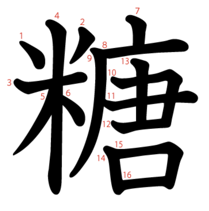 糖는 "방앗간(广)에서 쌀(米)을 절구(丨+口)에 빻아(⺕) 만든 설탕" -> "당, 설탕"이라는 뜻의 글자입니다.