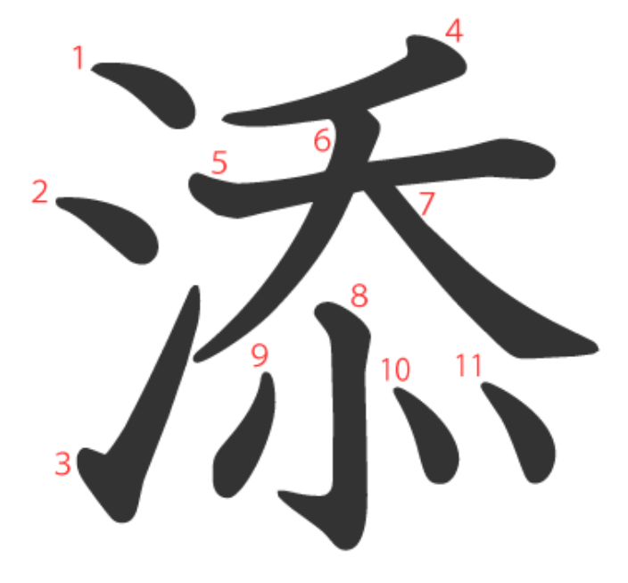 添는 "하늘(夭)에서 떨어지는 빗방울(⺗)이 강물(氵)에 더해지다" -> "더하다, 보태다"라는 뜻의 글자입니다.