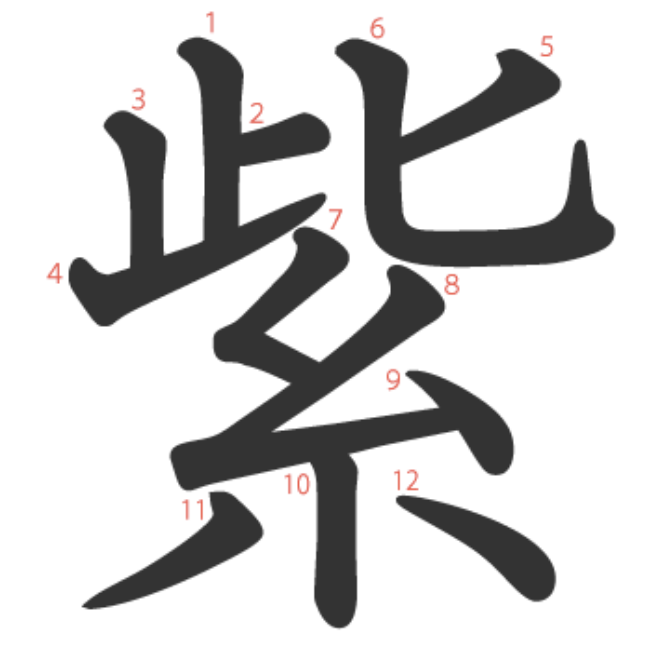 紫는 "보라색으로 염색한 실(糸)" -> "보라색, 자주색"이라는 뜻의 글자입니다(止는 소리부).