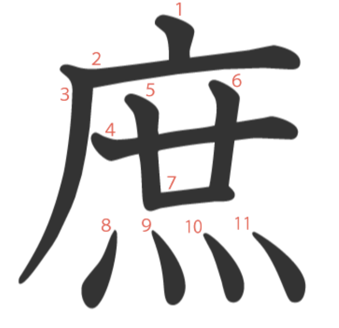 庶는 "집(广) 에서 냄비(廿)를 끓여(灬) 요리를 하는 서민" -> "서민, 대중" -> "여럿, 전부"라는 뜻의 글자입니다.