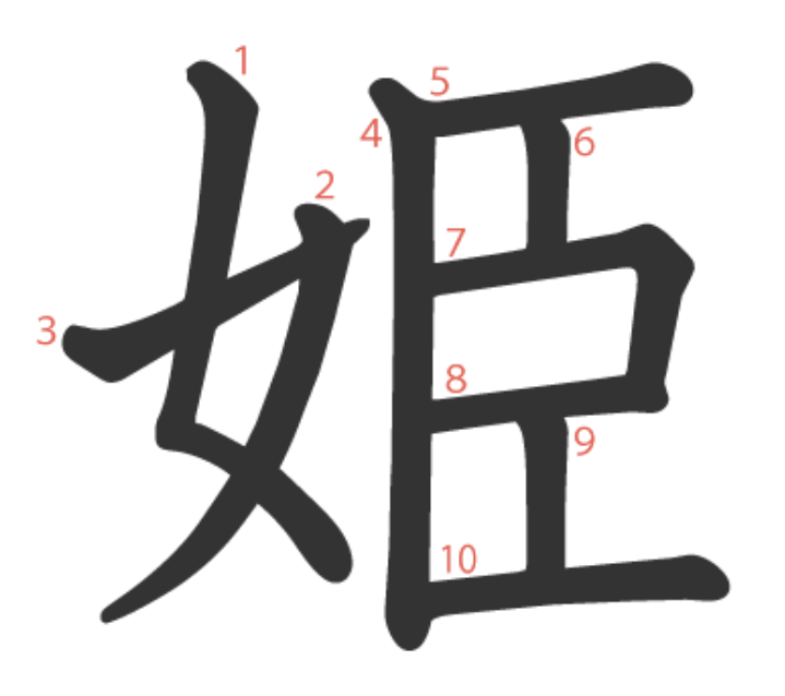 姫는 "시중드는 사람(臣)이 있는 여자(女)" -> "후궁, 아가씨, 공주"라는 뜻의 글자입니다.