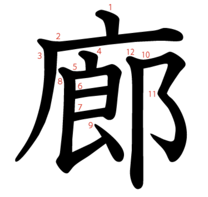 廊는 "집(广)에서 집주인(郎)만 지나다닐 수 있는 전용 회랑" -> "회랑, 복도"라는 뜻의 글자입니다.