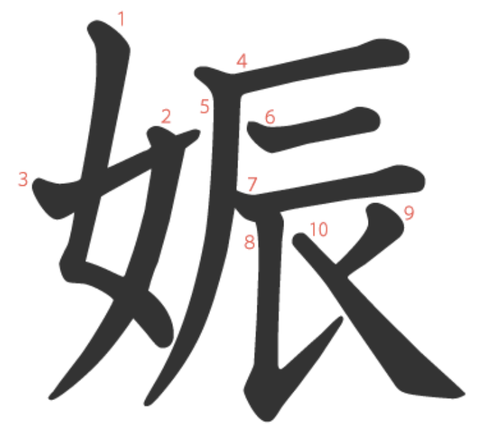 (의미부) 「女」는 "여자"를 뜻합니다.