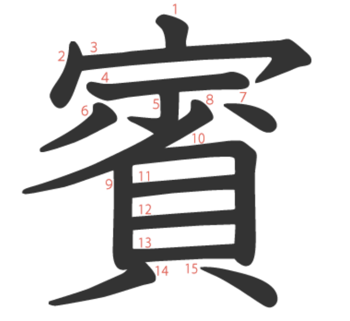 賓는 "가끔(少) 한 번씩(一) 집에(宀) 찾아오는 돈 많은(貝) 손님" -> "귀한 손님"이라는 뜻의 글자입니다.