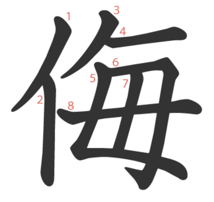 侮 = 亻 + 毎。