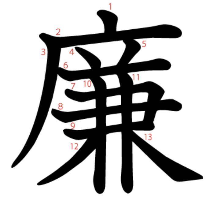廉 = 广 + 兼。