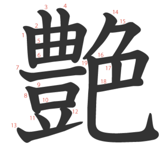 艶 = 豊 + 色。