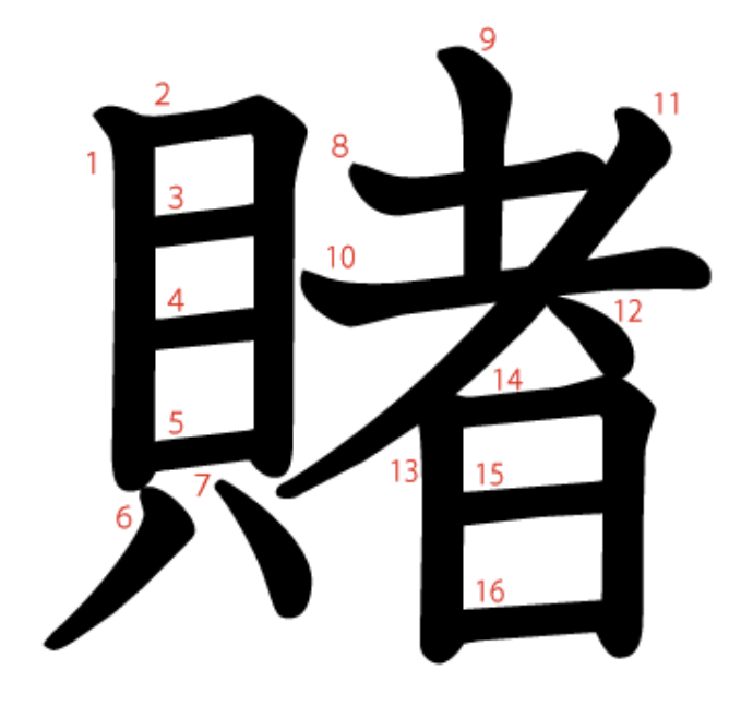 賭는 "돈(貝)을 거는 사람(者)" -> "내기, 도박"이라는 뜻의 글자입니다.
