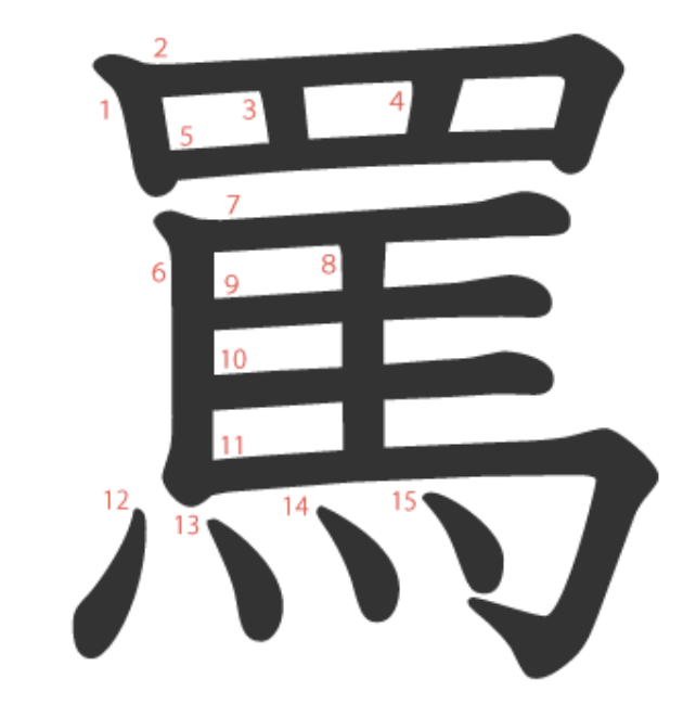罵 = 罒 + 馬。