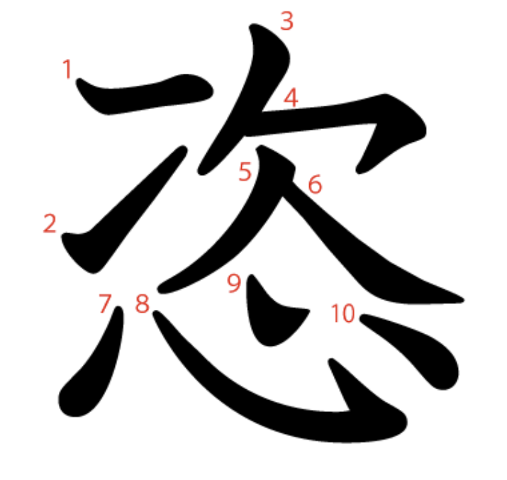 (의미부) 「心」는 "마음"을 뜻합니다.