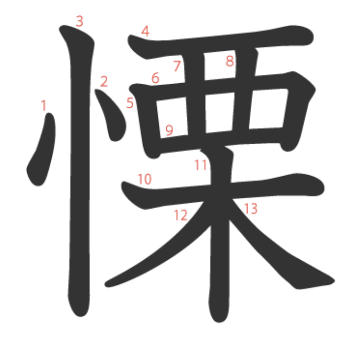 慄 = 忄 + 覀 + 木。