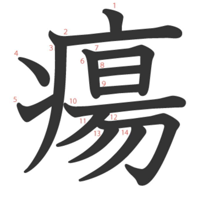 (의미부) 「疒」는 "병, 질병"을 뜻합니다.