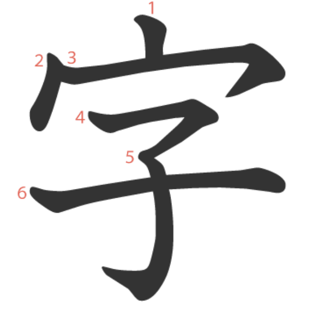 字는 "집(宀)에서 아이(子)가 태어나듯 새로운 한자가 만들어지다" -> "글자"라는 뜻의 글자입니다.