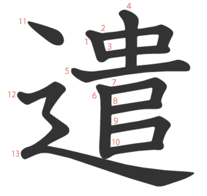 더보기- 의미 "남길 유". (사후에) 남기다, 잃어버리다