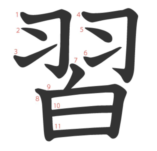 習는 "처음 날갯짓(羽)을 배우는 하얀(白) 아기새" -> "배우다, 익히다"라는 뜻의 글자입니다.