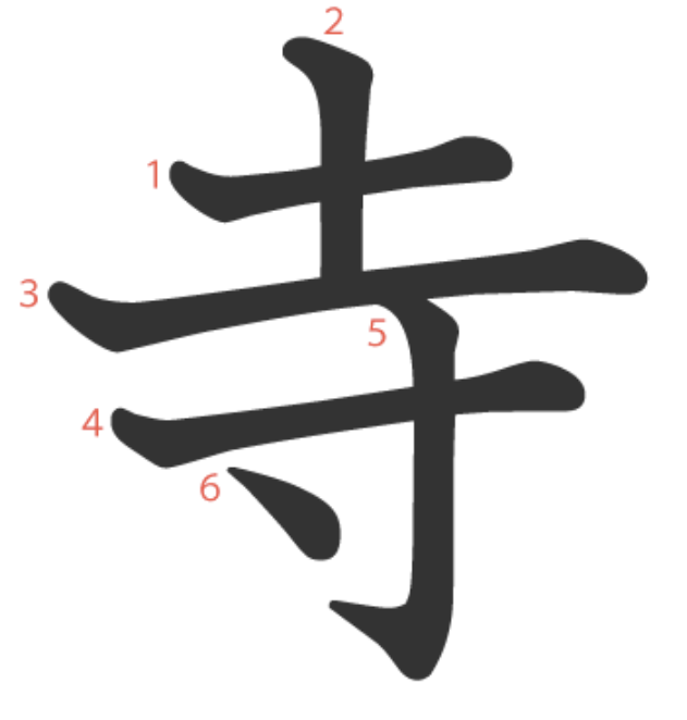 寺 = 土 + 寸。