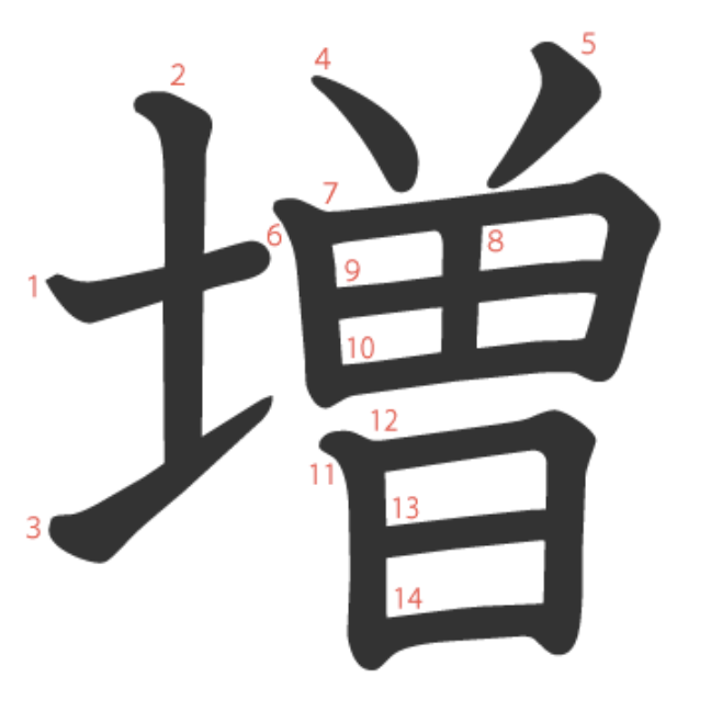 増 = 土 + 曽。