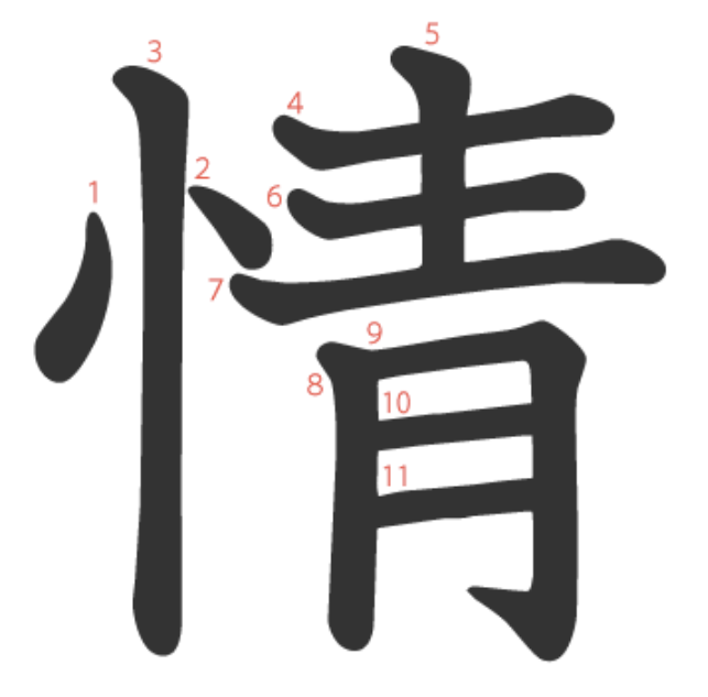 情 = 忄 + 青。