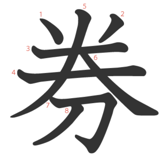 券은 "진짜라는 표식(龹)이 새겨진(刀) 증서" -> "증서, 표"라는 뜻의 글자입니다.