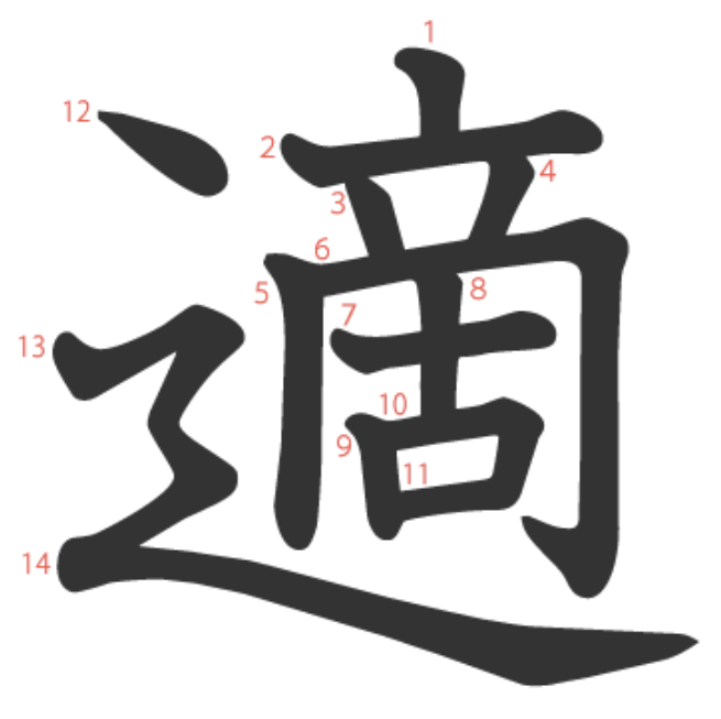 適 = ⻌ + 啇。