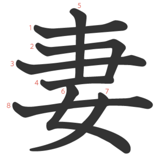 妻는 "아내(女)의 머리(十)를 쓰다듬어주다(⺕)" -> "아내"라는 뜻의 글자입니다.