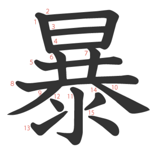 暴는 "강물(水)이 한꺼번에(共) 말라 버릴 정도로 매서운 햇빛(日)" -> "거친, 난폭한"이라는 뜻의 글자입니다.