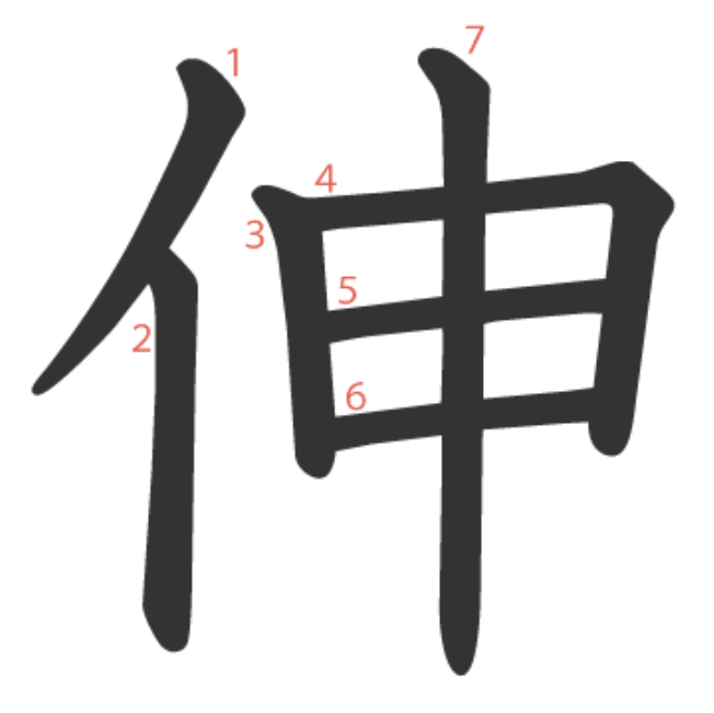 伸 = 亻 + 申。