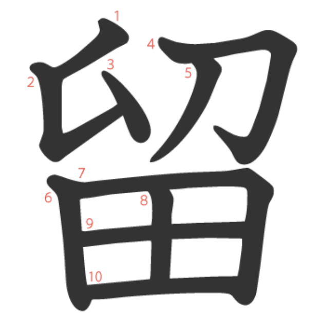 留는 "밭(田)을 경작하며(𠂎+刀) 한 곳에 머물러 살다" -> "머무르다"라는 뜻의 글자입니다.