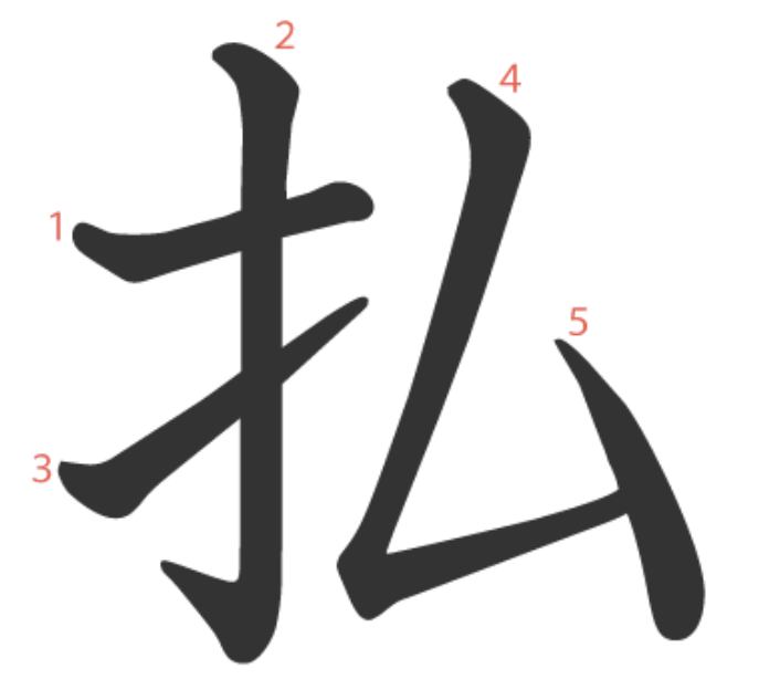払 = 扌 + 厶。