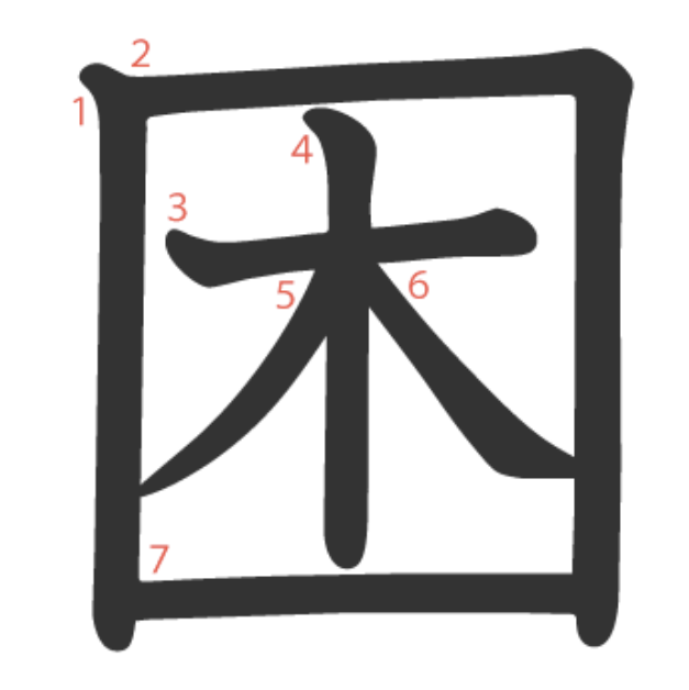 困 = 囗 + 木。